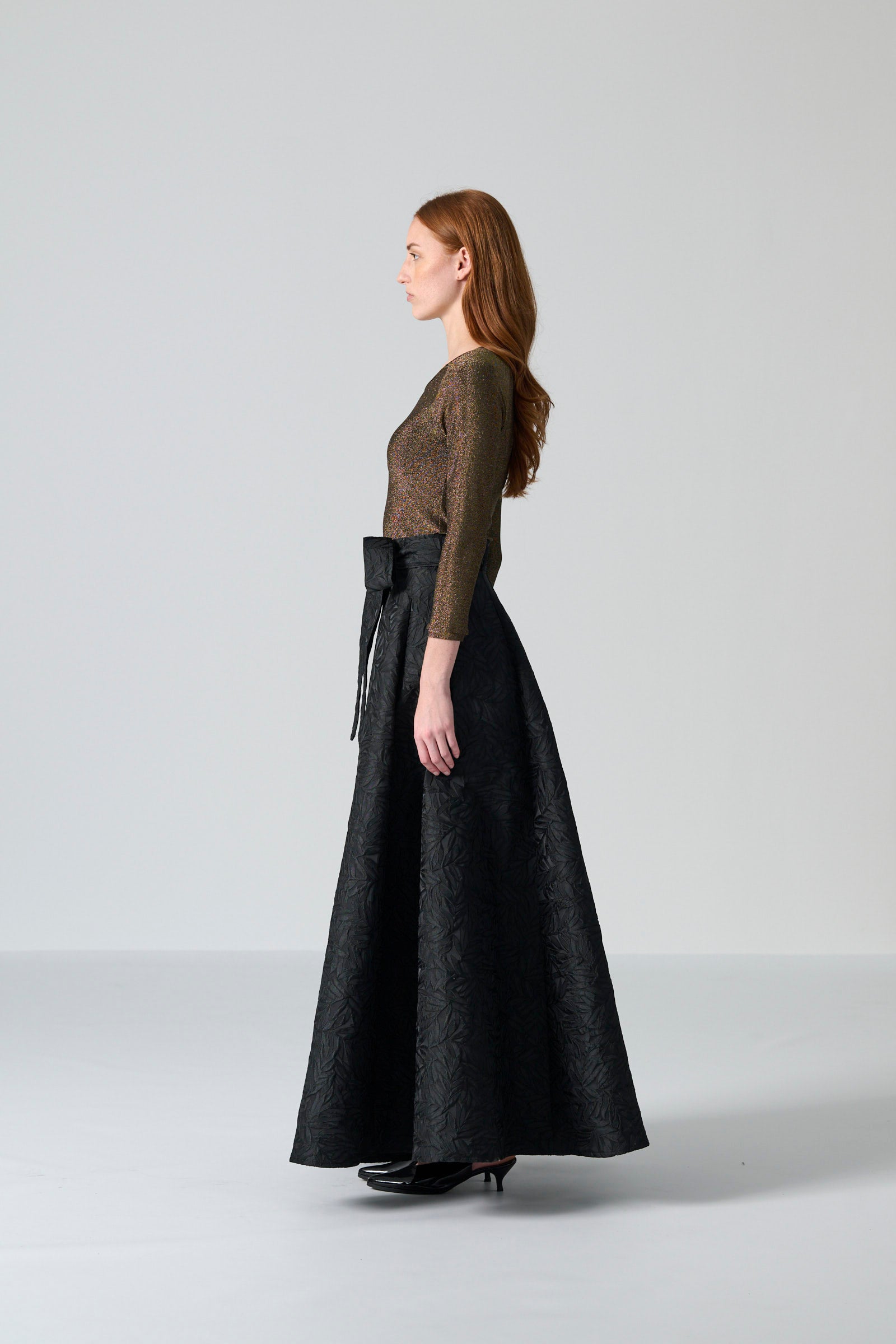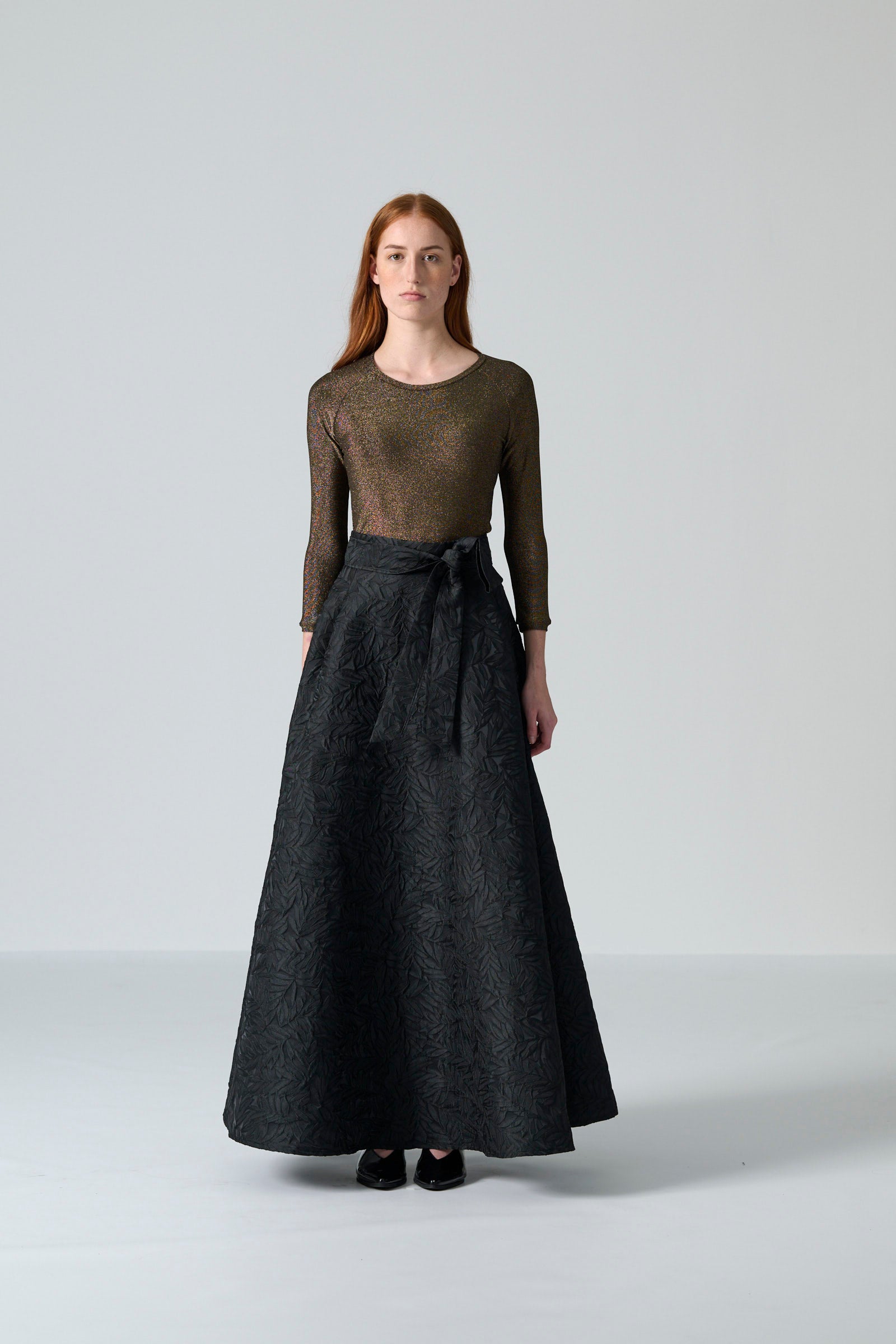 The Sparkle top brings effortless shine to any look. With its round neckline, fitted silhouette and three quarter sleeves, it offers a sleek, flattering shape that transitions easily from day to evening. The subtle gold lurex thread gives the knit a refined shimmer, adding just the right amount of sparkle without overpowering your outfit.