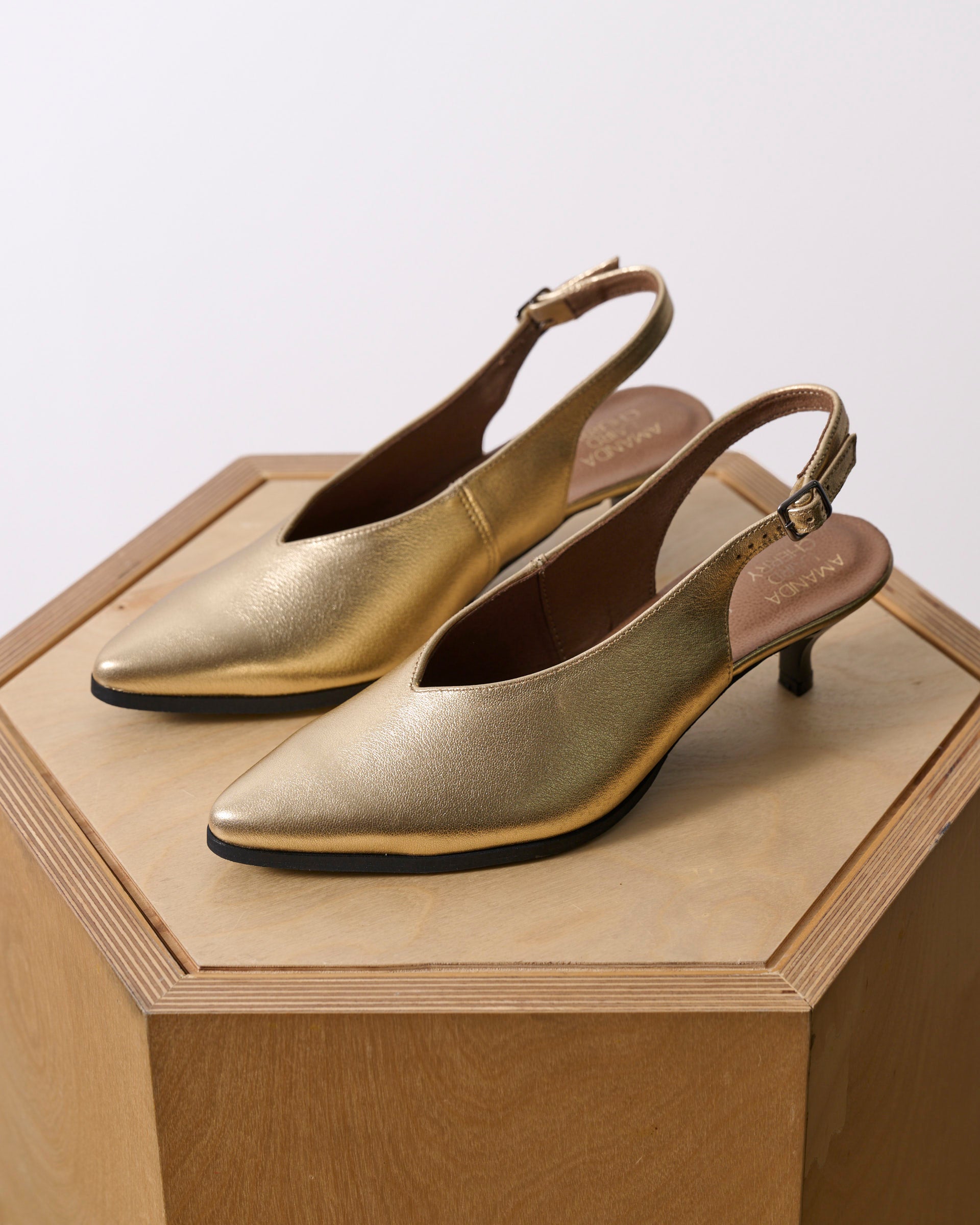 The gold leather is a warm, luminous shade with a subtle sheen, adding a sophisticated, contemporary touch to any outfit.