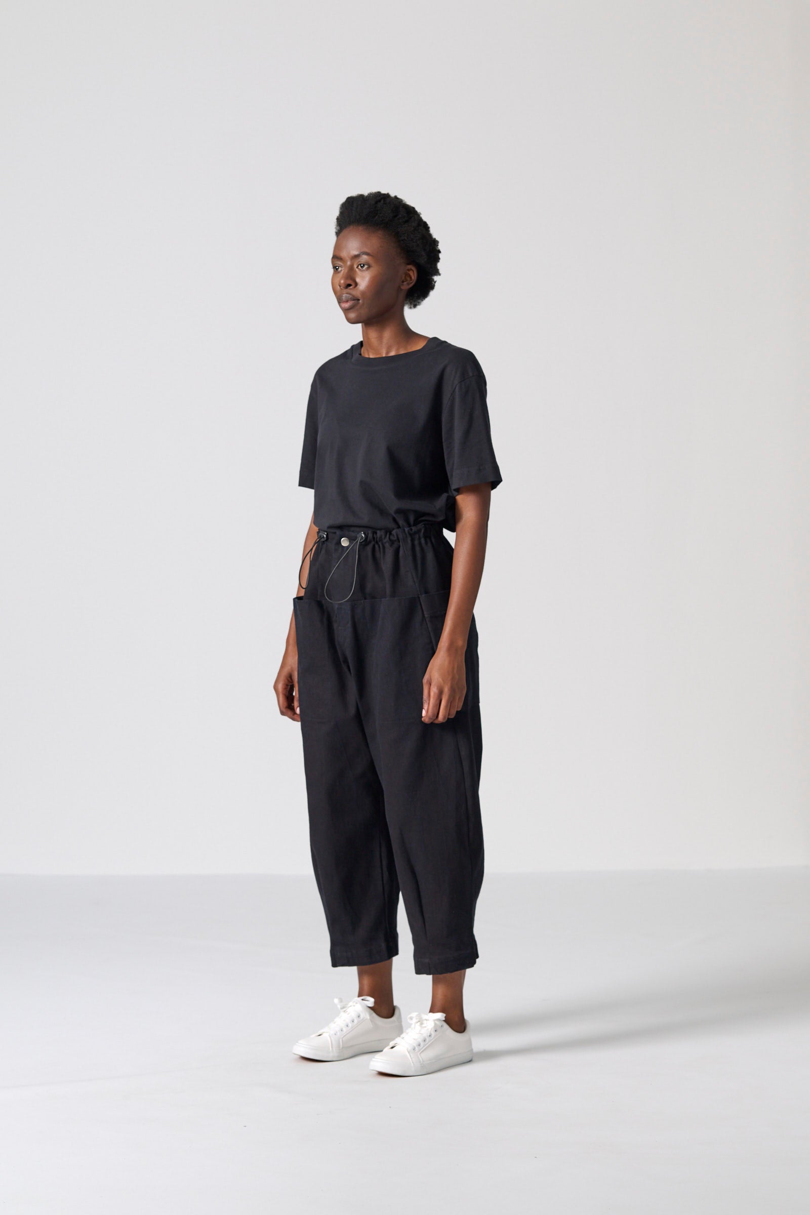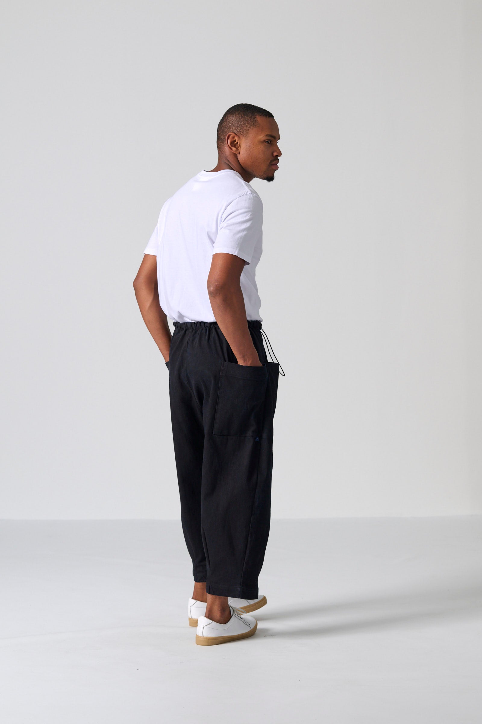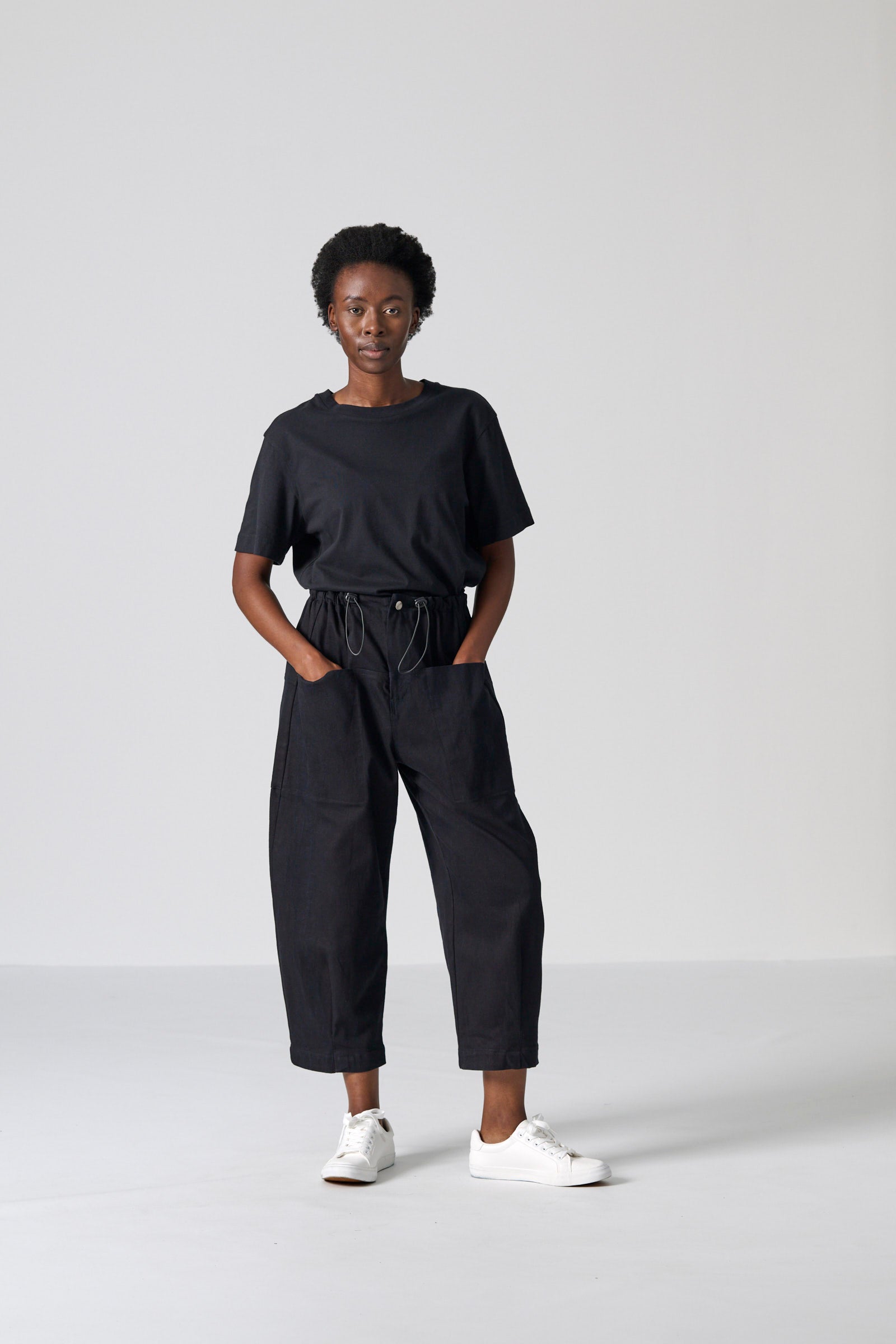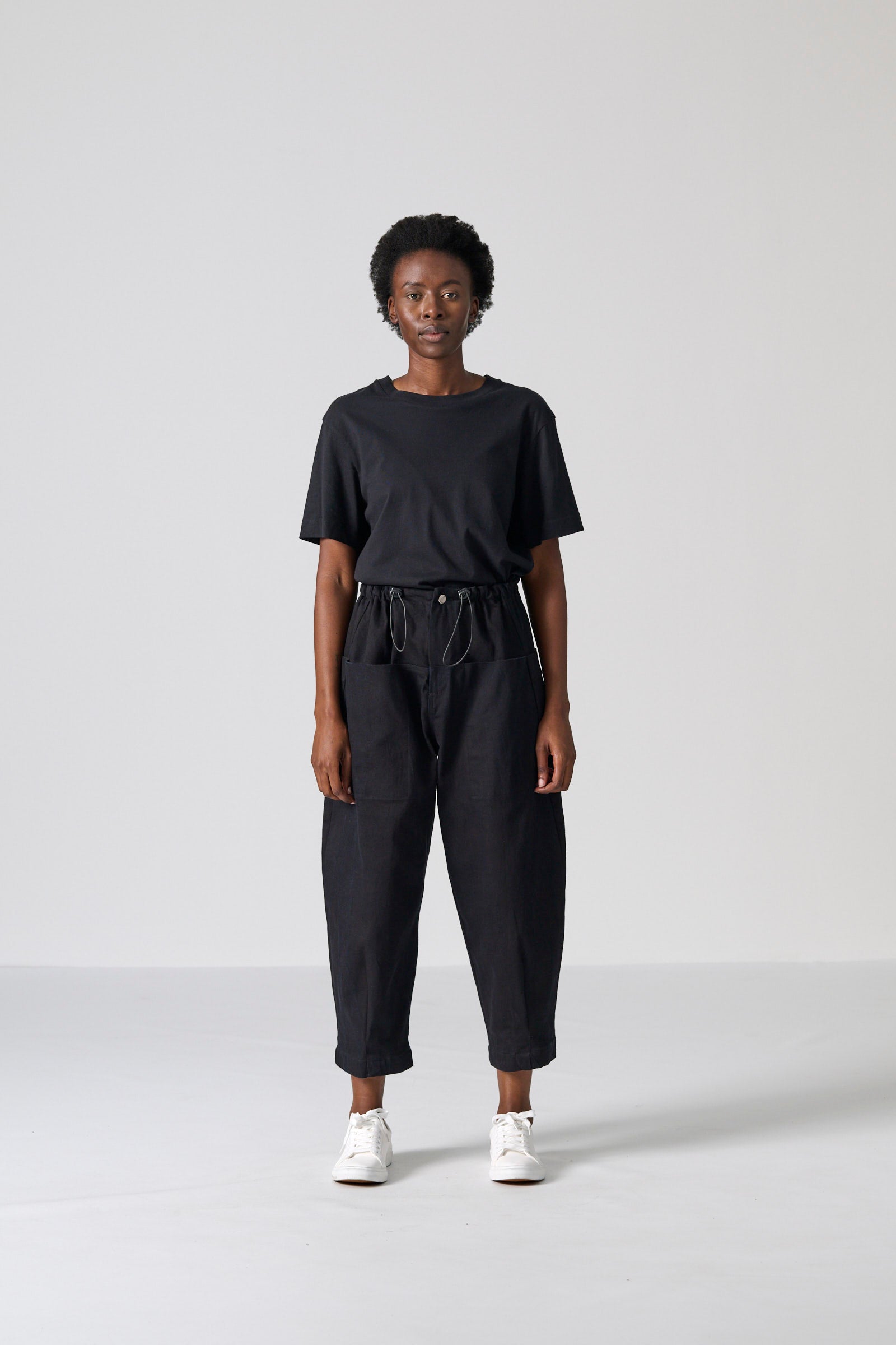 The Clye Pant offers a contemporary take on utility dressing, crafted in a roomy barrel-leg shape from washed black/black denim. With engineered pockets at the front and back, ergonomic dart placement and a bungee drawcord with toggles, it balances structure with ease. The tonal double-black finish delivers a sleek, minimal aesthetic suited to everyday wear.