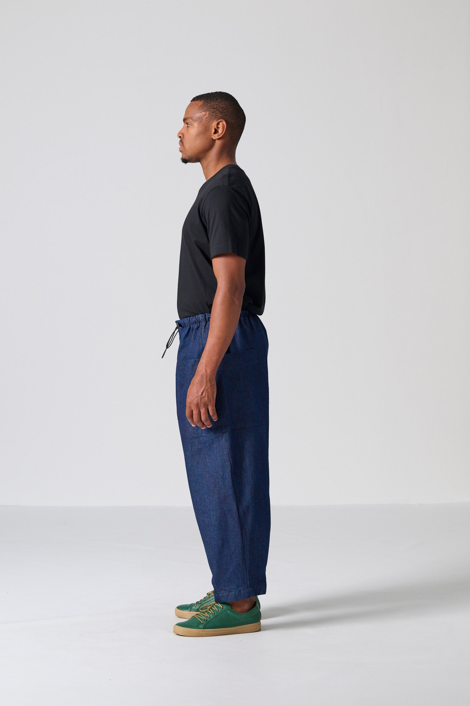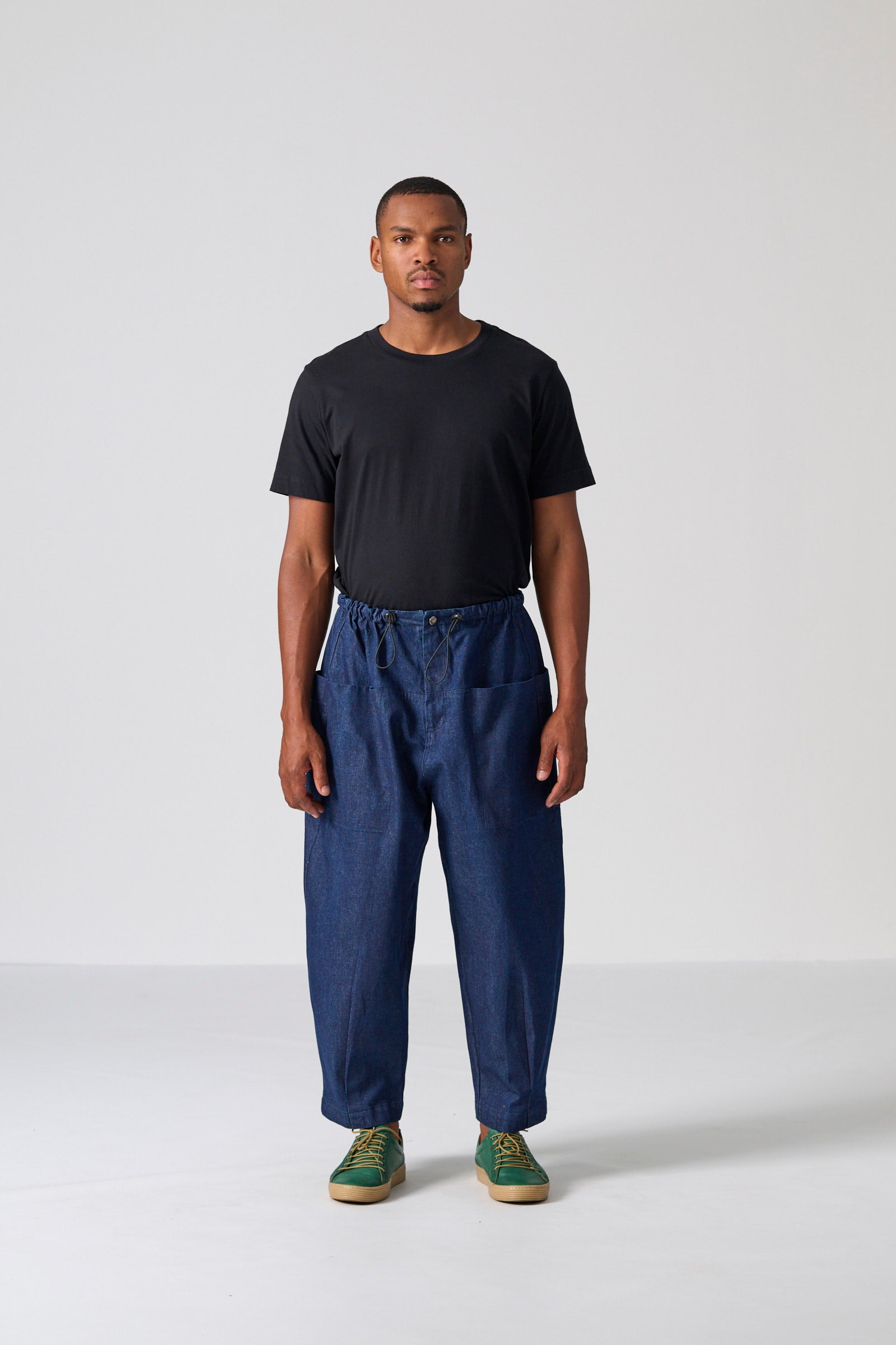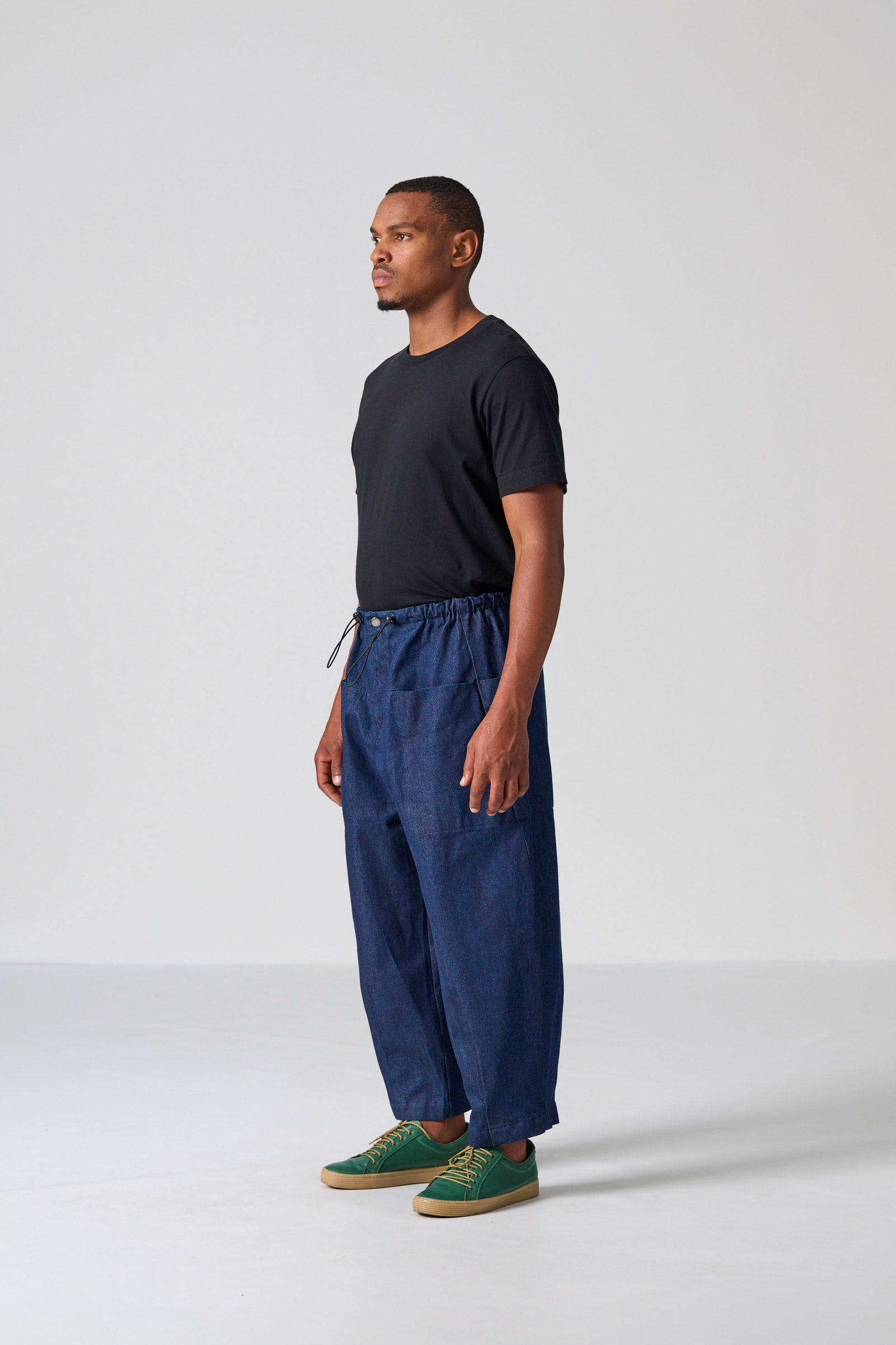 The Clye Pant is a relaxed utility essential, designed in a roomy barrel-leg silhouette and crafted from washed blue denim in 100% cotton. Engineered pockets, ergonomic darts and a bungee drawcord with toggles create a considered, functional finish. Effortlessly versatile, it pairs seamlessly with both structured and casual tops.