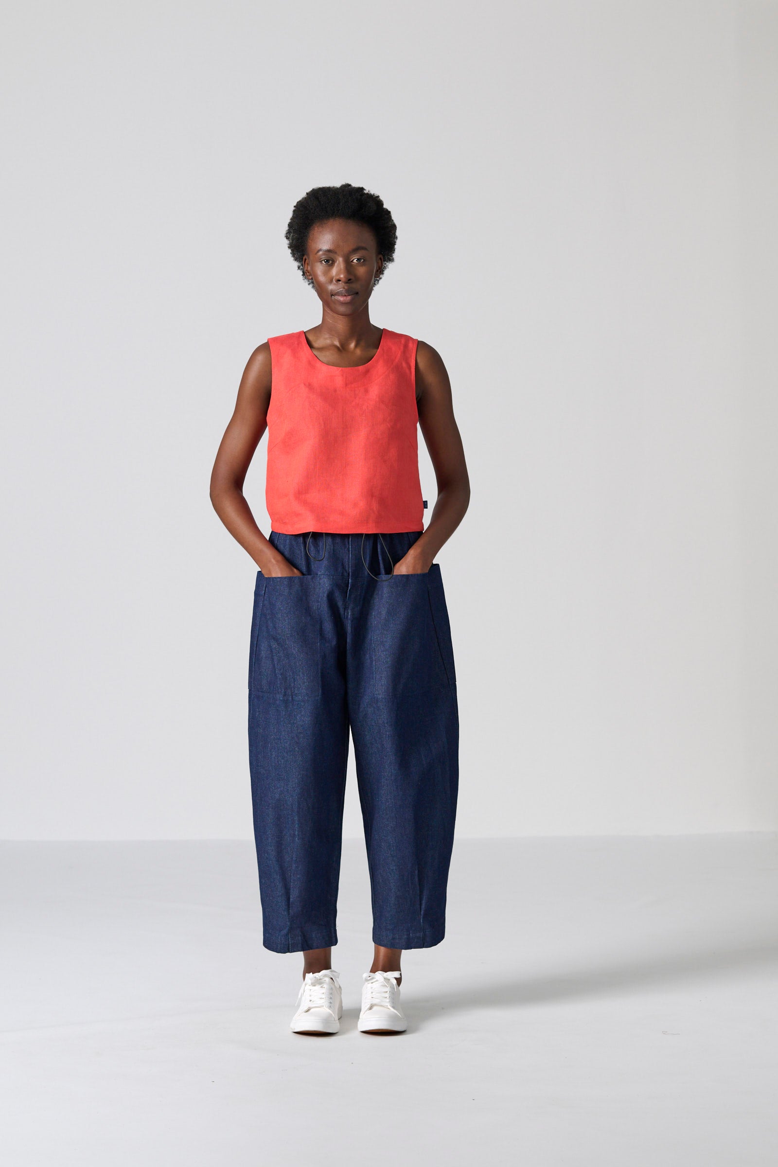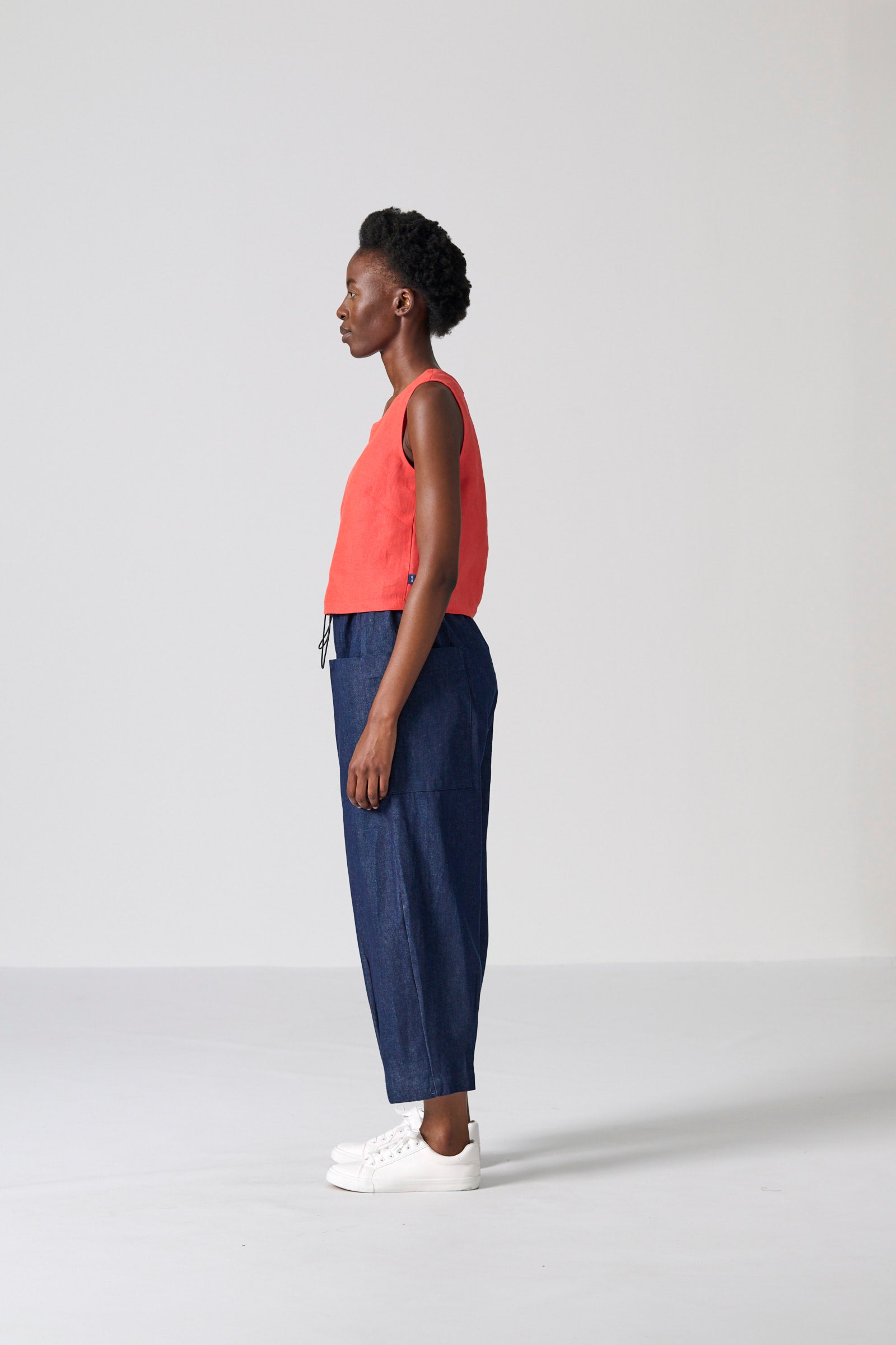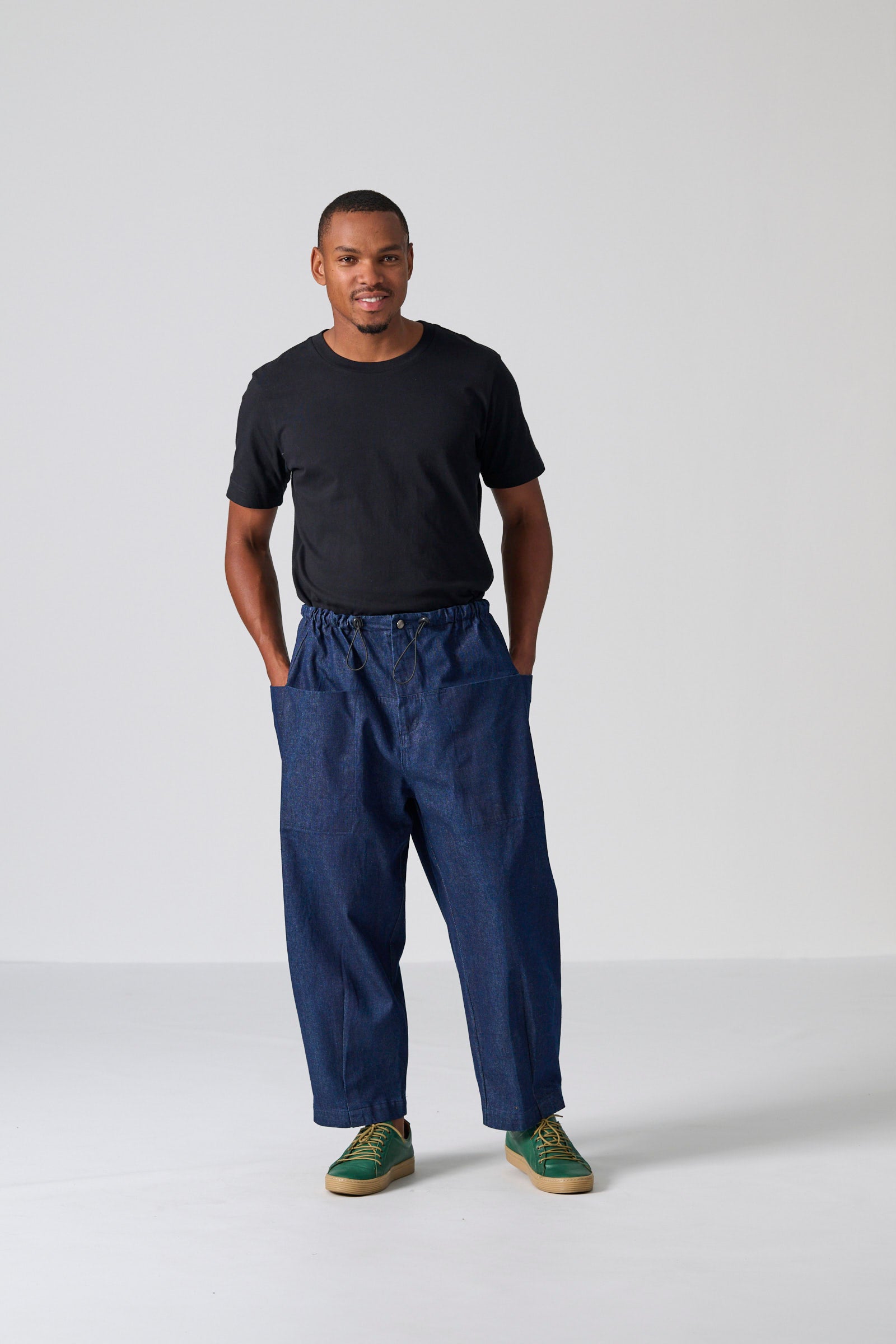The Clye Pant is a relaxed utility essential, designed in a roomy barrel-leg silhouette and crafted from washed blue denim in 100% cotton. Engineered pockets, ergonomic darts and a bungee drawcord with toggles create a considered, functional finish. Effortlessly versatile, it pairs seamlessly with both structured and casual tops.