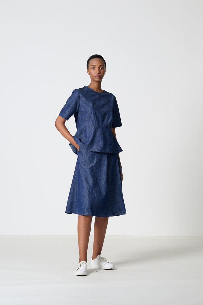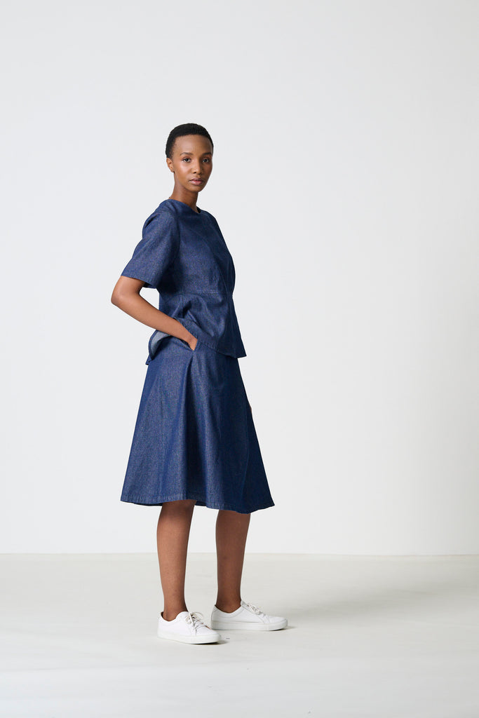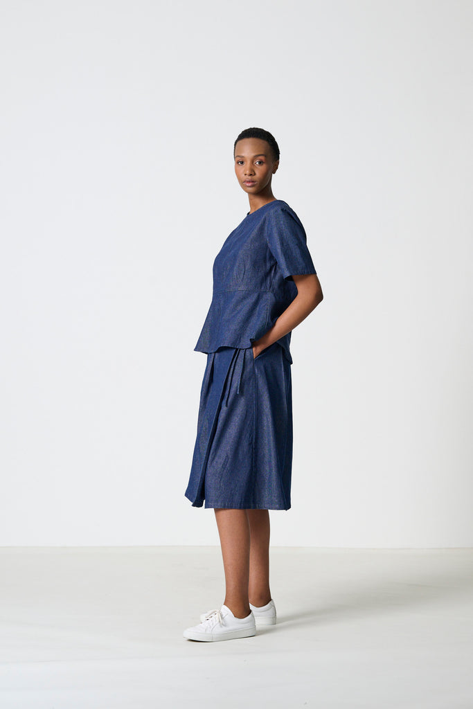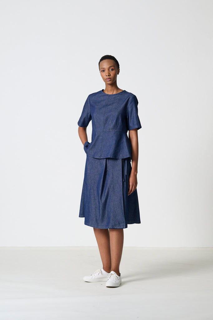The Jeppe is an asymmetric, on-the-knee-length skirt. This piece showcases a simple wrap design that's offset with simple binding ties. It's crafted from high-quality sateen, offering an effortless styling approach.