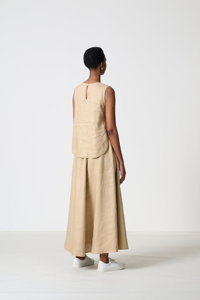 Husk Camel 100% Linen / Cold gentle machine wash. Do not bleach. Warm iron on reverse. Line dry in shade.