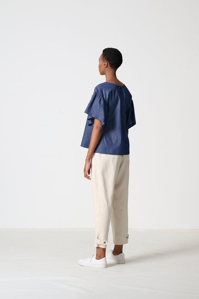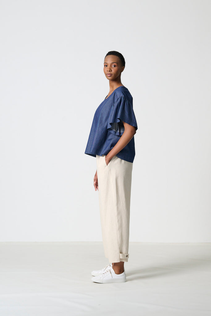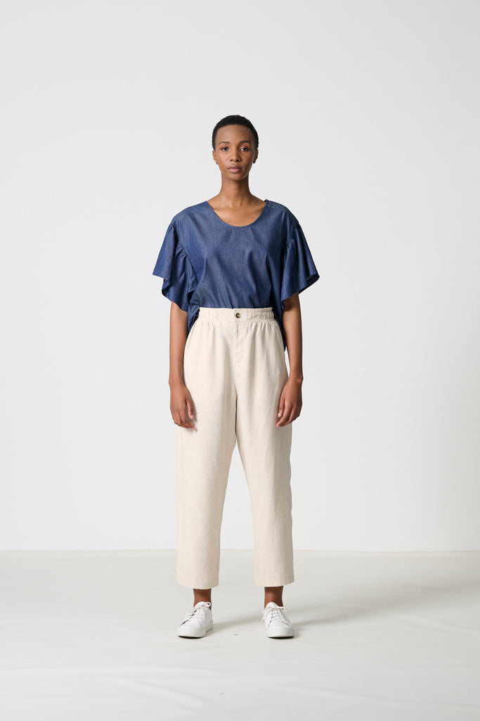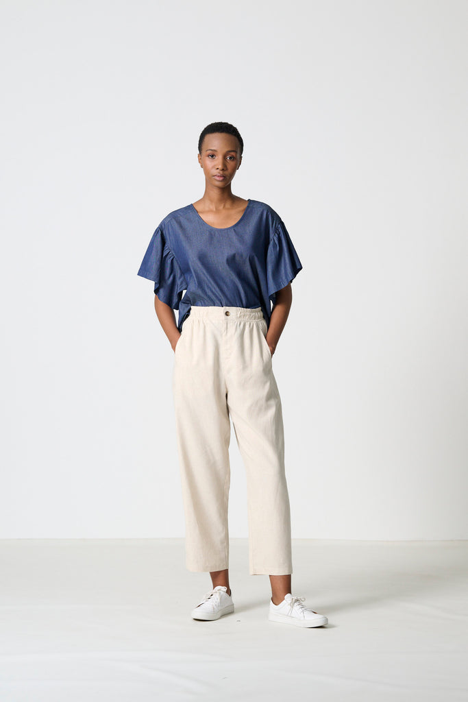 Stride is a versatile pant designed for movement and ease. With a relaxed silhouette, it can be styled to suit your personal shape and comfort. The elasticated waistband and adjustable back hem allow a tailored fit while keeping a laid-back, effortless look. Lightweight and fluid, the linen Tencel blend brings airy comfort and a natural sophistication to every outfit.